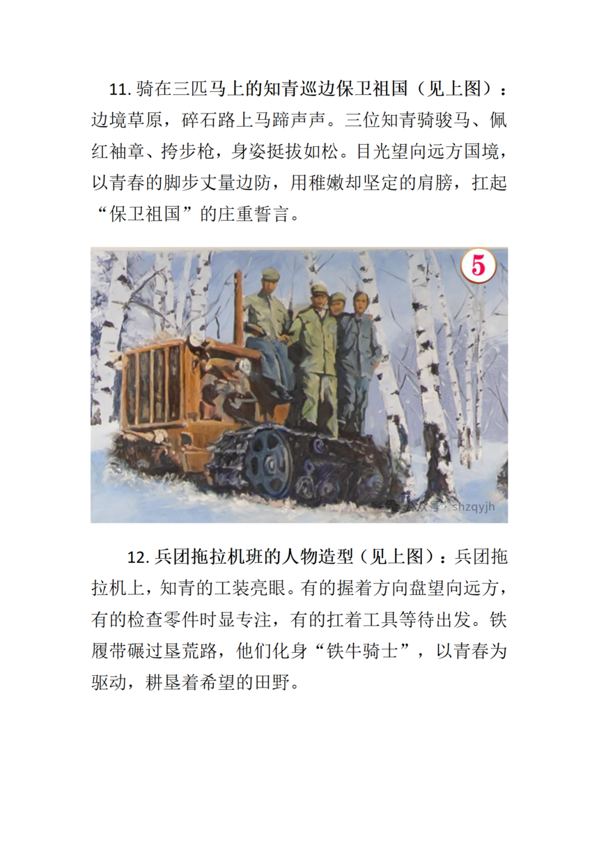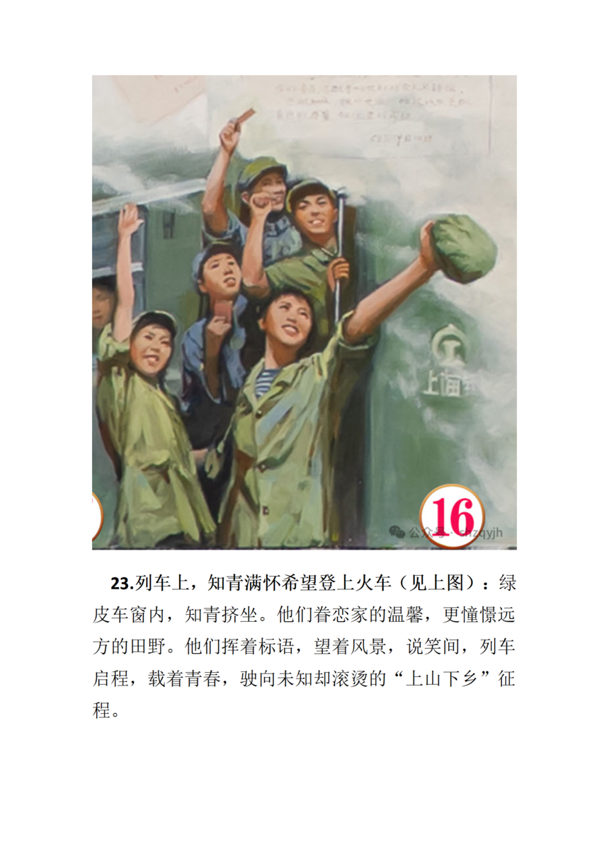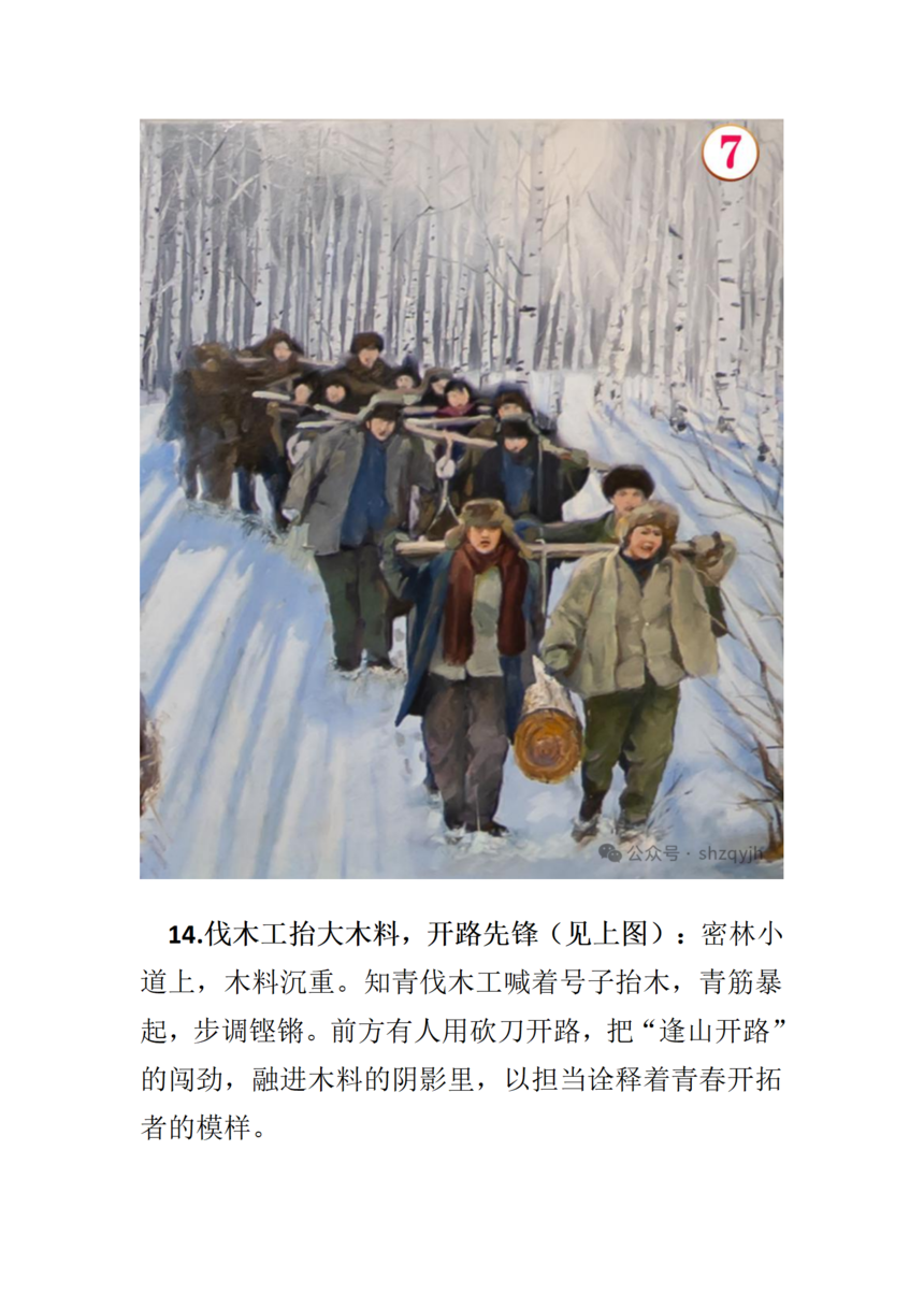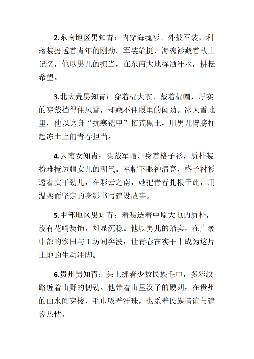 画面中间部分七位来自不同地域的知青群像(见上图),从左至右依次为: