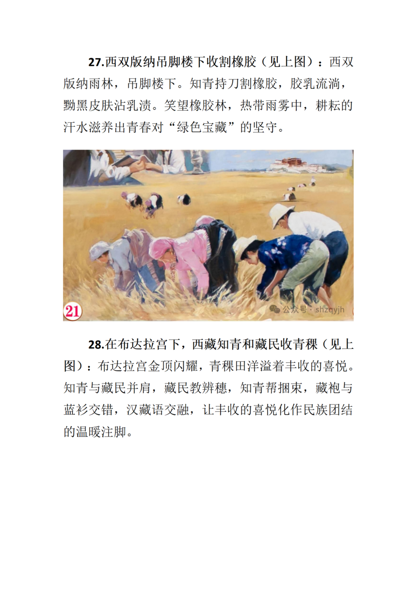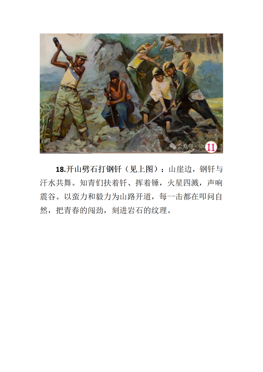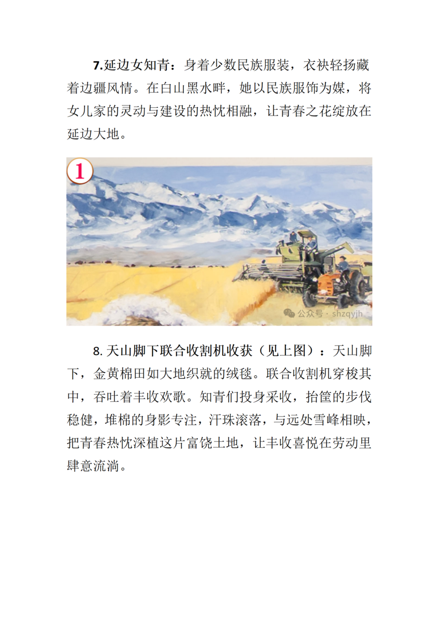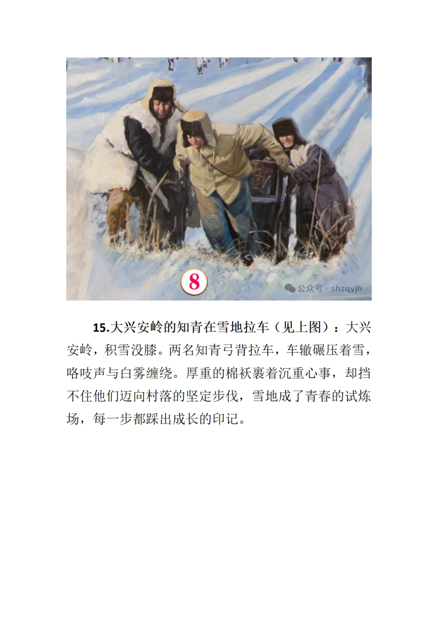 画面中间部分七位来自不同地域的知青群像(见上图),从左至右依次为: