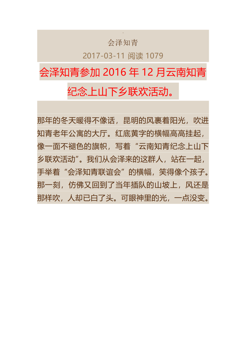 会泽知青参加2016年12月云南知青纪念上山下乡联欢活动