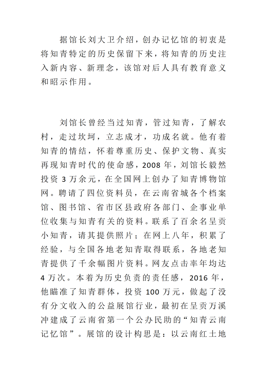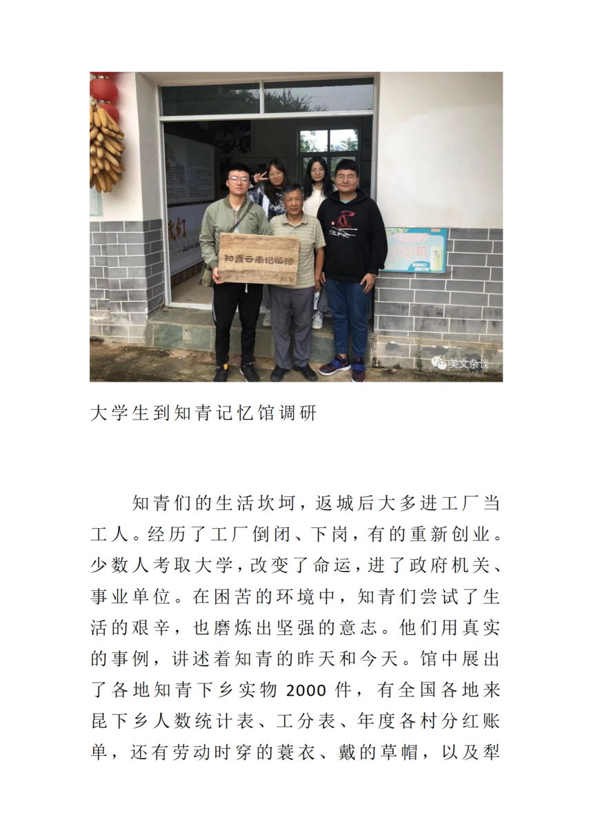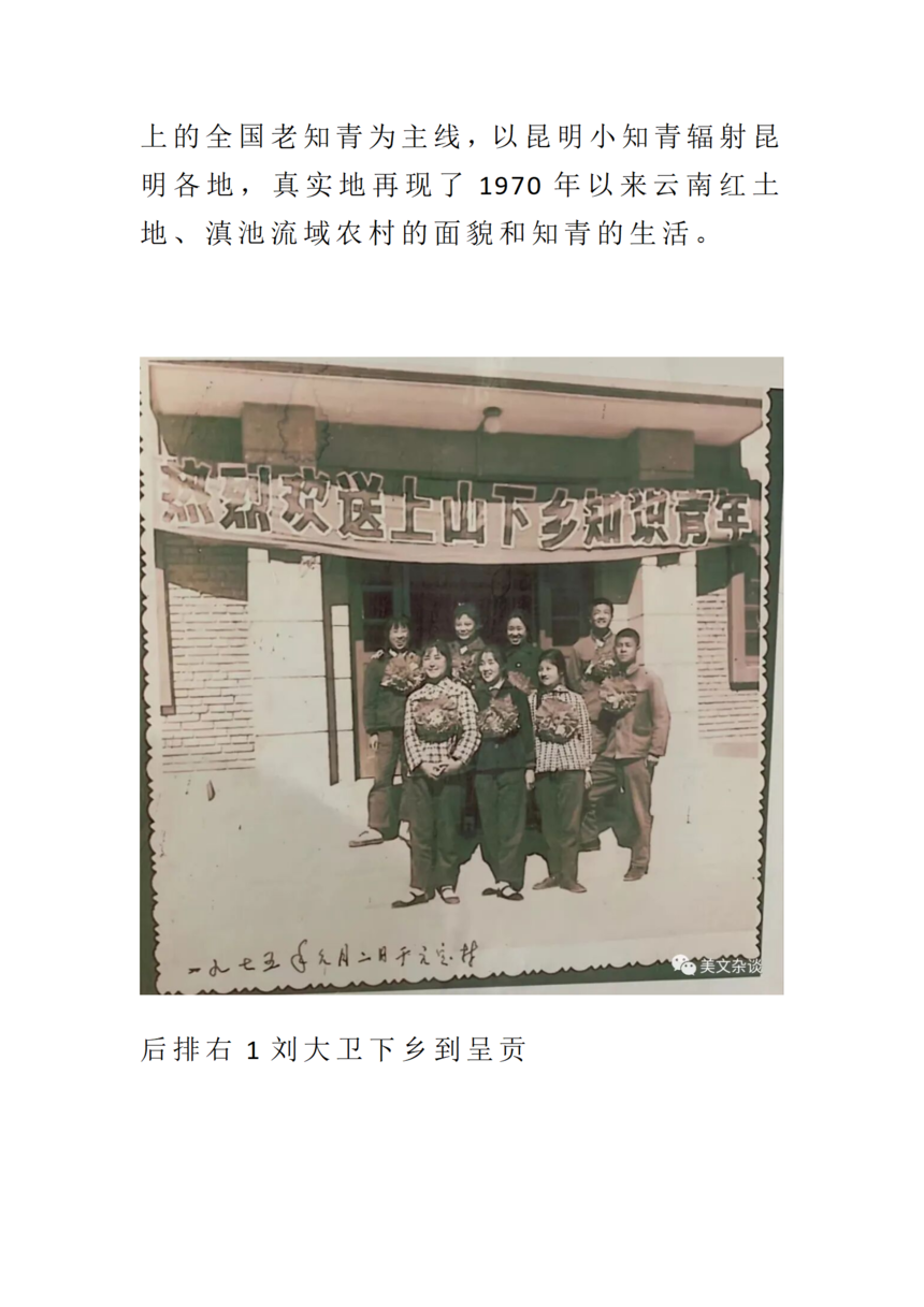 在昆明晋宁区宝峰驼鸟山庄,耸立起一座知青记忆馆。它以1969届至1979届1700万“老三届”“小知青”上山下乡运动为背景,再现了上海、北京、四川、重庆等地老知青在第二故乡西双版纳、瑞丽、耿马、保山、腾冲、芒市、下关、临沧、文山、开远、昆明滇池流域等地区的“小知青”农村生活、劳作等画面,昭示着知青们青春岁月在云南;理想拼搏在乡村的坚韧奋斗精神。