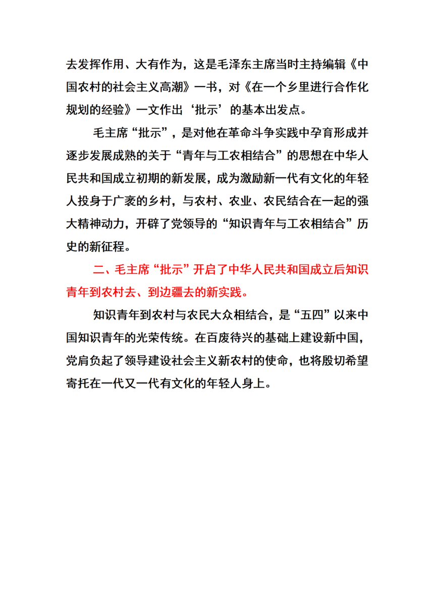 毛主席1955年发出“农村是一个广阔的天地,在那里是可以大有作为的”批示(以下简称“批示”),截至2025年,该批示已经发出70年了。重温这一“批示”,感到十分亲切。这里,我谈三点体会: