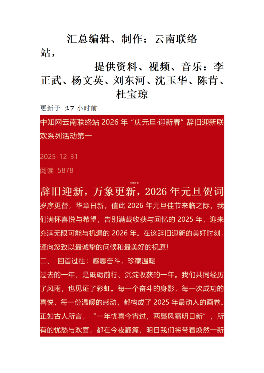 一、中知网云南联络站2026年“庆元旦迎新春”新年贺词