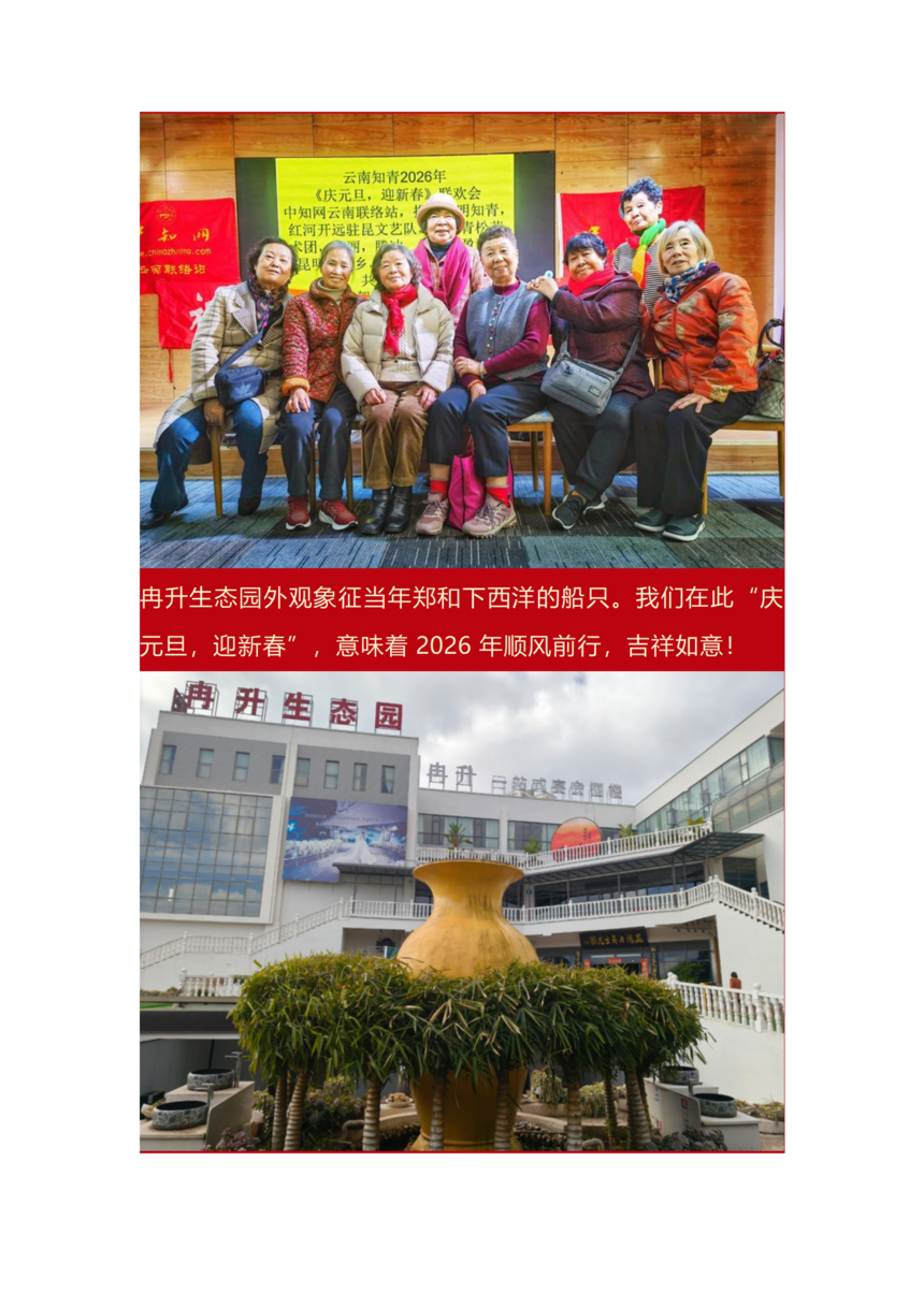 当岁月的车轮缓缓驶过2025年的轨迹,我们站在时光的交汇点上,回首过往,展望未来。新年的曙光正穿透晨雾,为我们照亮前进的方向。在这辞旧迎新的美好时刻,中知网云南联络站,怀着最诚挚的心意,向每位知青朋友送上最温暖的新年祝福,愿大家在新的一年里,健康快乐,以不老松的姿态,年轻的心态,去追逐梦想与目标! . 今天是个好日子,让我们携手前行,欢聚一堂,“庆元旦,迎新春”!