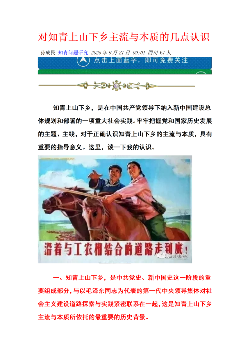 对知青上山下乡主流与本质的几点认识