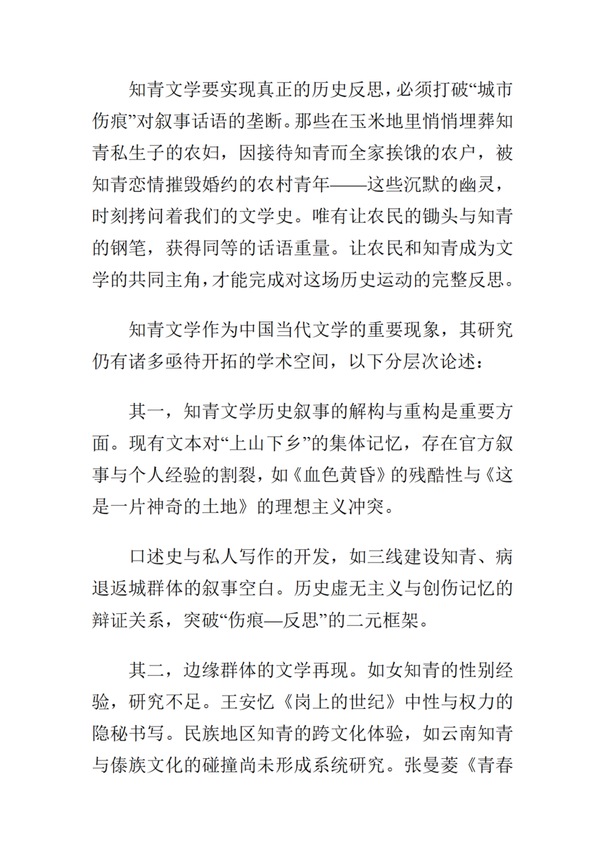 知青文学作为中国当代文学史的重要组成部分,其研究存在以下值得深入探讨的问题,已决、盲点与难点包括分层问题。