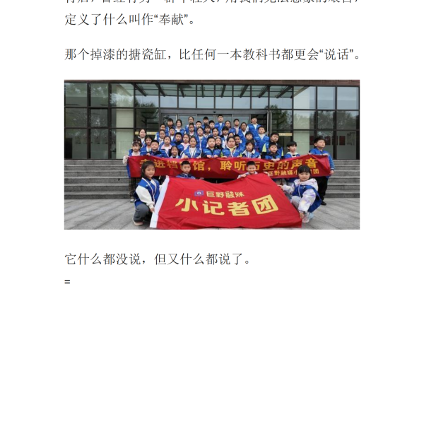 《一个搪瓷缸的时光穿越:这届孩子,竟然被它“破防”了》 一个掉漆的搪瓷缸上印着"为人民服务",让刷短视频长大的孩子第一次触摸到历史的温度。当现代校服遇上知青的"宝贝",这场县城档案馆的实践课,用最粗粝的实物给轻飘的青春扎下了根。