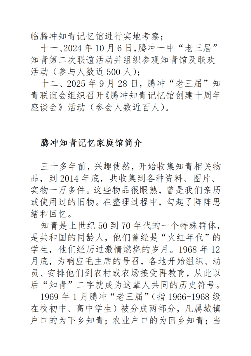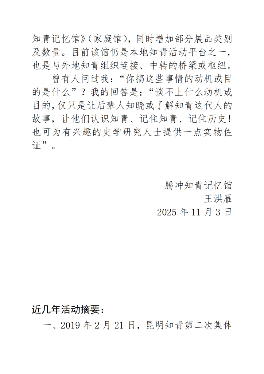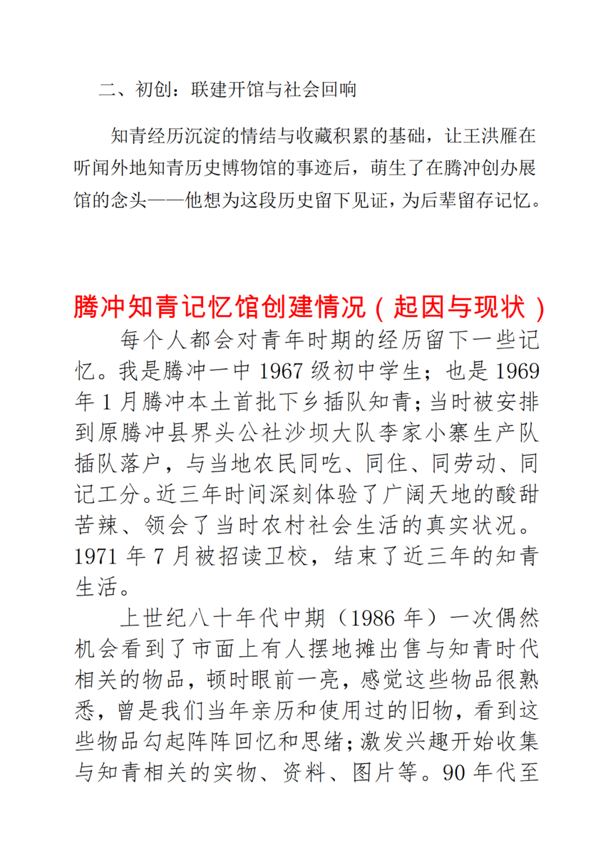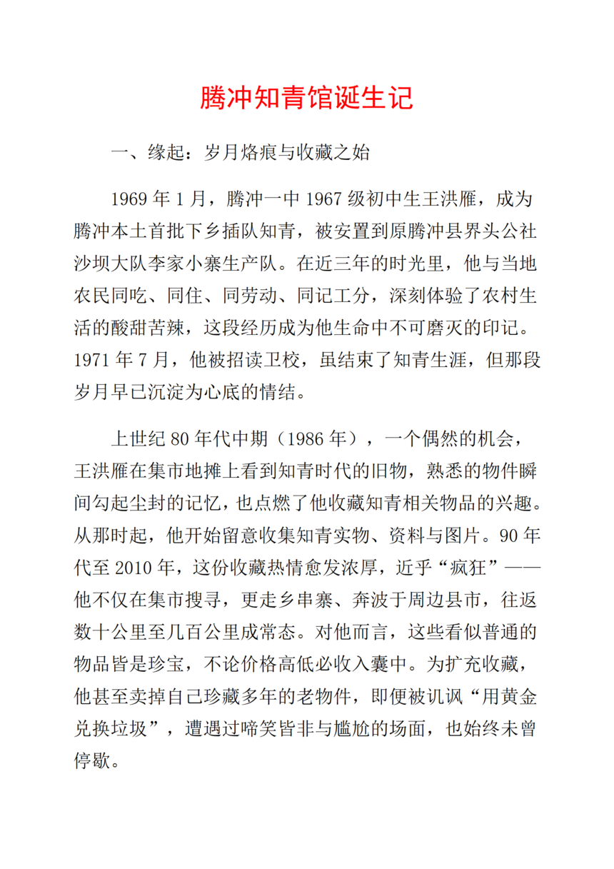 1969年1月,腾冲一中1967级初中生王洪雁,成为腾冲本土首批下乡插队知青,被安置到原腾冲县界头公社沙坝大队李家小寨生产队。在近三年的时光里,他与当地农民同吃、同住、同劳动、同记工分,深刻体验了农村生活的酸甜苦辣,这段经历成为他生命中不可磨灭的印记。1971年7月,他被招读卫校,虽结束了知青生涯,但那段岁月早已沉淀为心底的情结。